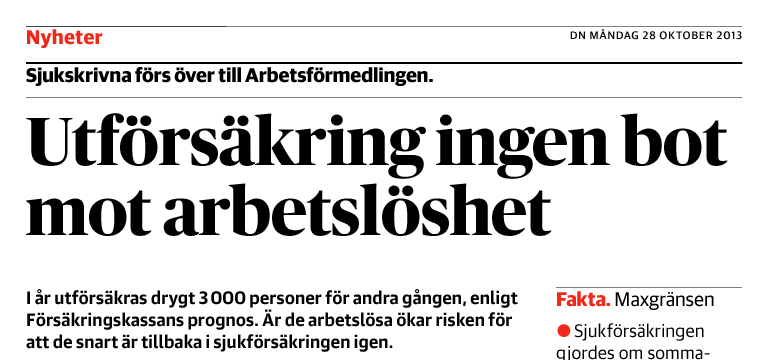I Dagens Nyheter är det idag en artikel om ”utförsäkrade” och deras rundgång i socialförsäkringen.